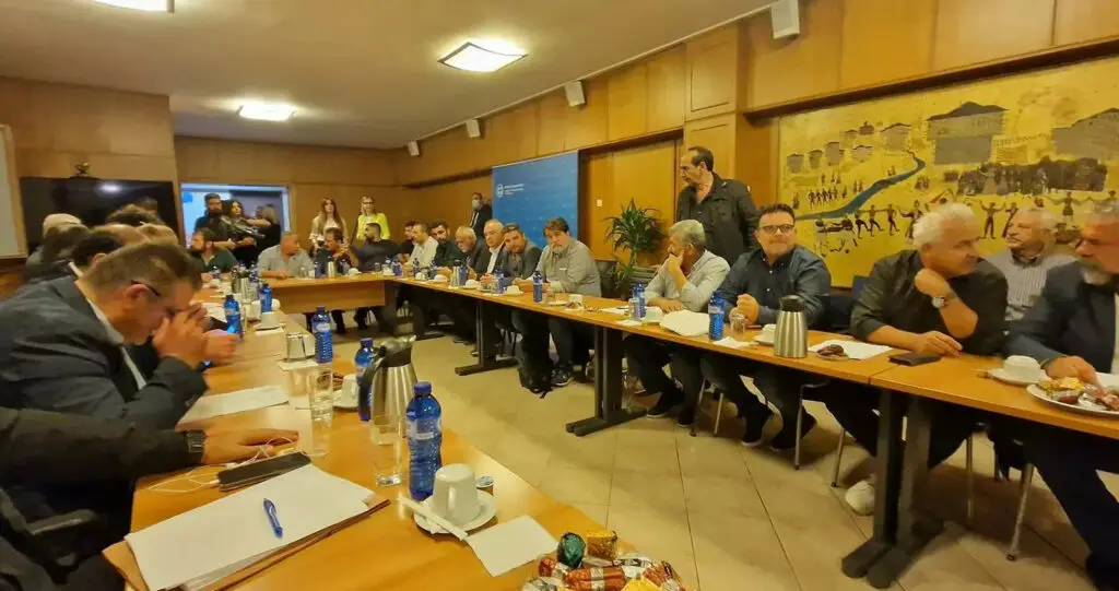 Επίσης, ο Περιφερειάρχης Κρήτης, Αντιπεριφερειάρχης Ειρ. Χουδετσανάκης και ο Πρόεδρος του ΕΛΓΑ, Ανδρέας Λυκουρέντζος, βρίσκονται παρόντες στη σύσκεψη για να εξεταστεί το πρόβλημα και να εξευρεθούν λύσεις.