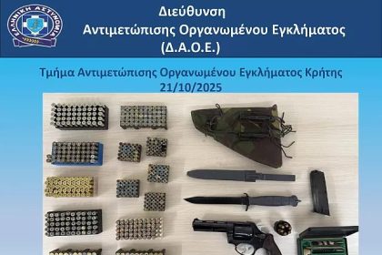 Ηράκλειο: Εντοπίστηκε «οπλοστάσιο» σε σπίτι 57χρονου – Βρέθηκαν και ασύρματοι ενδοεπικοινωνίας