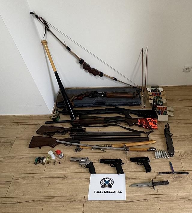 Ειδικότερα, στο πλαίσιο του ειδικού σχεδιασμού και δράσεων που εκπονεί η Διεύθυνση Αστυνομίας Ηρακλείου για την καταπολέμηση της παράνομης οπλοκατοχής και κατόπιν κατάλληλης αξιοποίησης στοιχείων από αστυνομικούς της ανωτέρω υπηρεσίας, πραγματοποιήθηκαν πρωινές ώρες σήμερα έρευνες στην οικία και σε αποθηκευτικούς χώρους που κατέχει και χρησιμοποιεί ο ημεδαπός σε περιοχή του Δήμου Γόρτυνας .