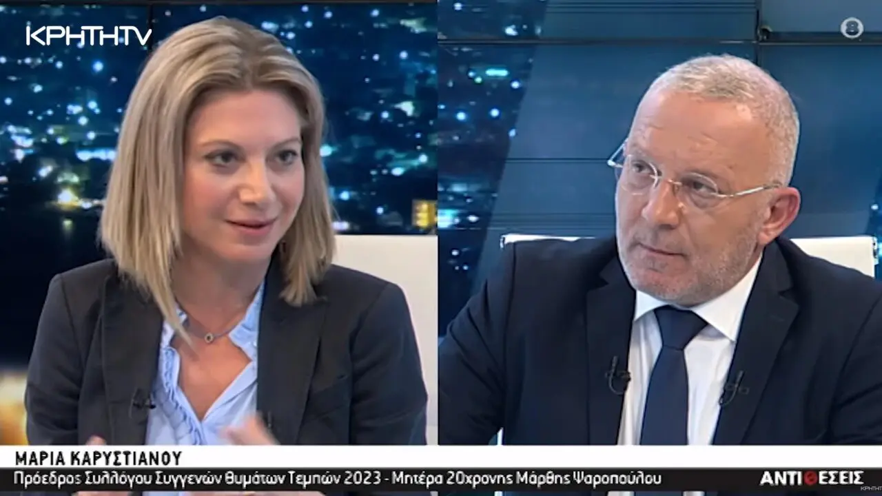 Μυλοπόταμος News > Ροή Ειδήσεων > Κρήτη > Μαρία Καρυστιανού στις “Αντιθέσεις”: «Μετά από δύο μέρες μπάζωσαν τον χώρο» – «Θα μπορούσε από σεβασμό να λείπει το χειροκρότημα στον Καραμανλή»