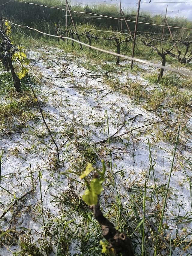 Σύμφωνα με τους ίδιους η καταστροφή σε ορισμένες περιπτώσεις είναι ολοκληρωτική με το χαλάζι να καταστρέφει το αμπέλι.