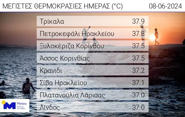 Στο Ηράκλειο καταγράφηκε σήμερα η μέγιστη θερμοκρασία, σε ότι αφορά την Κρήτη με το θερμόμετρο να καταγράφει 37,8 βαθμούς Κελσίου.