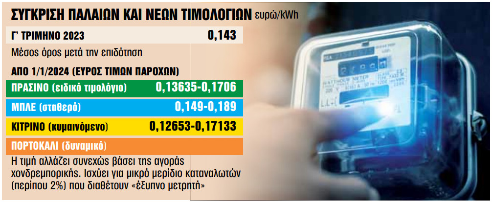 Πλέον, όλοι οι καταναλωτές μεταφέρθηκαν σε ένα μεταβατικό-ειδικό τιμολόγιο (πράσινο χρώμα), εκτός κι αν κάποιος είχε επιλέξει άλλο πρόγραμμα πριν από την Πρωτοχρονιά.