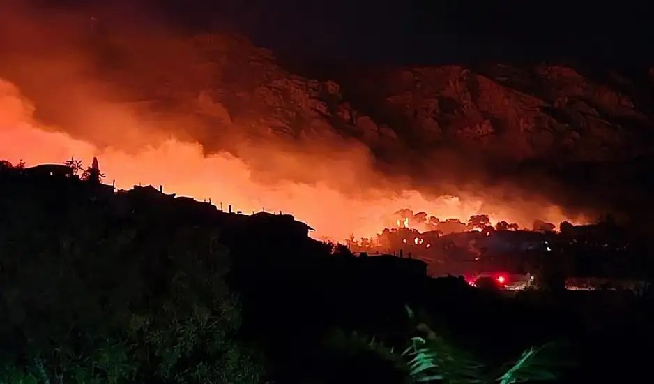 Συνεχίζεται η μάχη με τις φλόγες στη Χίο, με τους πυροσβέστες να δίνουν μεγάλη μάχη για να περιορίσουν το πύρινο μέτωπο.
