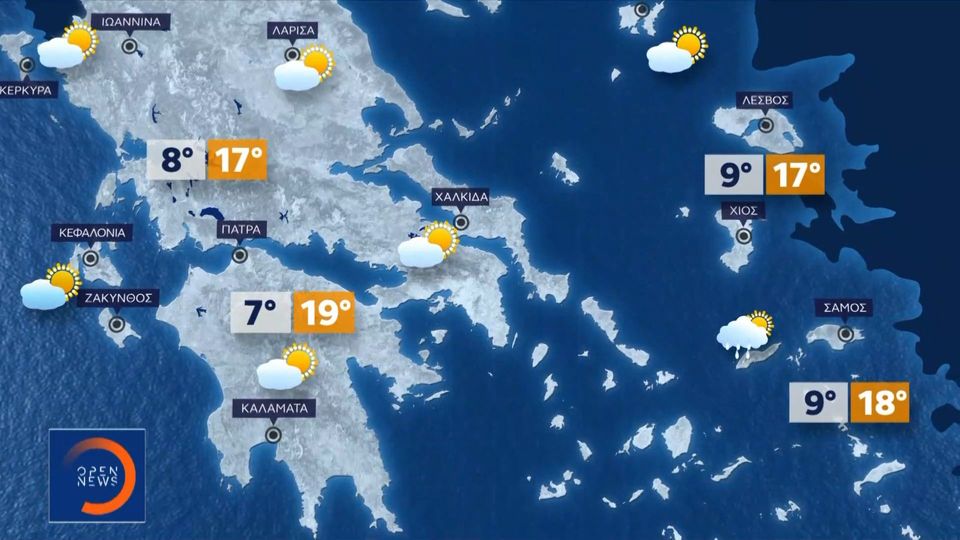 Καιρός: Αραιές νεφώσεις πρόσκαιρα πυκνότερες τις μεσημβρινές και απογευματινές ώρες.