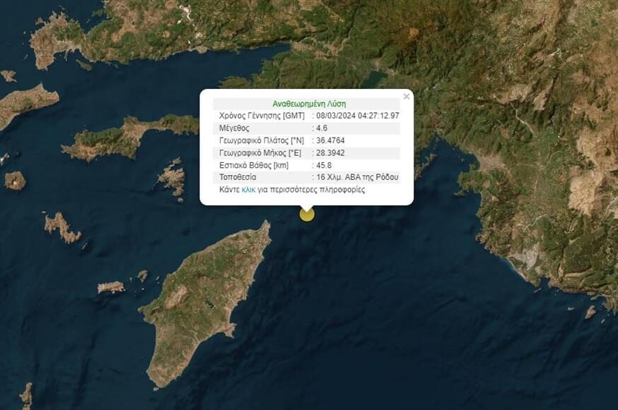 Διαβάζετε: Σεισμός 4,6 Ρίχτερ στη Ρόδο