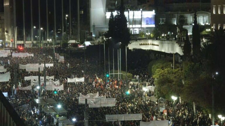 Την ώρα που μεγαλειώδη συλλαλητήρια πραγματοποιούνται στην Αθήνα και μεγάλες πόλεις της χώρας για τα Τέμπη, το Σύνταγμα μετατρέπεται για ακόμη μία φορά σε πεδίο μάχης. Χημικά και φωτοβολίδες μέσα στον κόσμο, τραυματίες, ατμόσφαιρα ασφυξίας και συνθήκες κατάργησης της ελεύθερης βούλησης δεκάδων χιλιάδων ανθρώπων να απαιτήσουν Δικαιοσύνη.