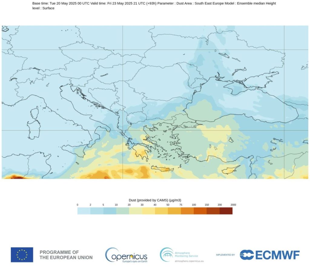 Το συγκεκριμένο κύμα σκόνης θα είναι περισσότερο έντονο από την Πέμπτη και μετά με τις μεγαλύτερες συγκεντρώσεις να εκδηλώνονται στα νησιά Ιονίου, την Πελοπόννησο, τη Στερεά (και Αττική), τη Θεσσαλία και την Κρήτη.