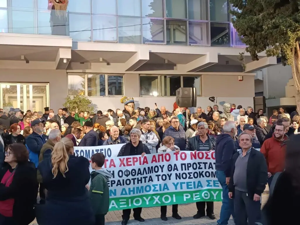 Ώρα 6μμ και το Δημαρχείο Ρεθύμνου γεμίζει από κόσμο συμμετέχοντας στο μεγάλο συλλαλητήριο για την υγεία το οποίο θα καταλήξει στο «πολύπαθο» νοσοκομείο Ρεθύμνου. Εκπρόσωποι φορέων δίνουν το παρόν και άνθρωποι κάθε ηλικίας είναι εκεί διεκδικώντας ένα καλύτερο δημόσιο σύστημα υγεία.