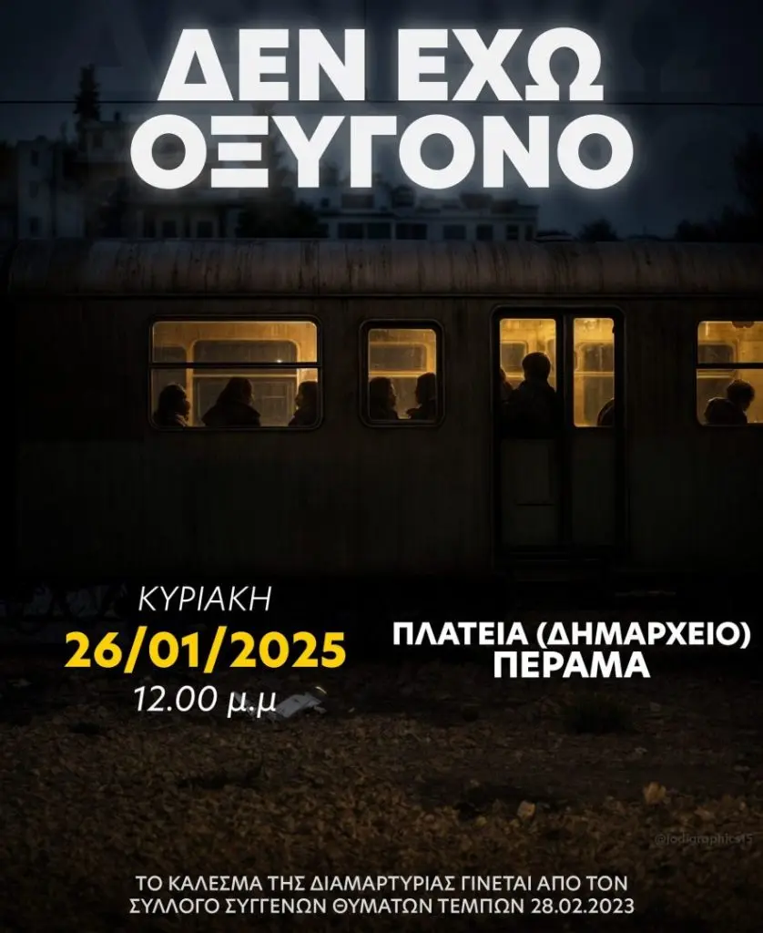 Με κεντρικά συνθήματα «Δεν έχω οξυγόνο» και «Κανένα έγκλημα χωρίς τιμωρία», χιλιάδες κόσμου αναμένεται να δώσουν το παρών την Κυριακή, στις διαδηλώσεις που προγραμματίζονται με αφορμή την υποψηφιότητα Τασούλα για την Προεδρία της Δημοκρατίας, αλλά και υπό το βάρος της αποκάλυψης νέου ηχητικού από το 112 και του πορίσματος του τεχνικού συμβούλου των θυμάτων για την έκρηξη και τη φωτιά στη σιδηροδρομική τραγωδία της 28ης Φεβρουαρίου 2023.