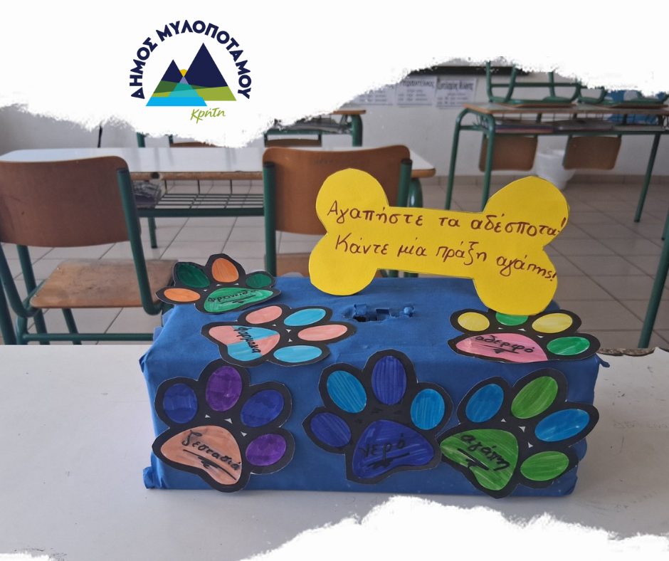 Μέσα από μια συλλογική προσπάθεια, τα παιδιά κατασκεύασαν χειροποίητο κουμπαρά και συγκέντρωσαν χρήματα, με τη συμμετοχή των ίδιων, των εκπαιδευτικών τους και του Διευθυντή του σχολείου. Τα χρήματα που συγκεντρώθηκαν αξιοποιήθηκαν για την αγορά τροφών και δοχείων φαγητού, τα οποία δόθηκαν για τη φροντίδα αδέσποτων ζώων του Δήμου, σε συνεργασία με το Κτηνιατρείο Πετουσάκη – Κοζορώνη.