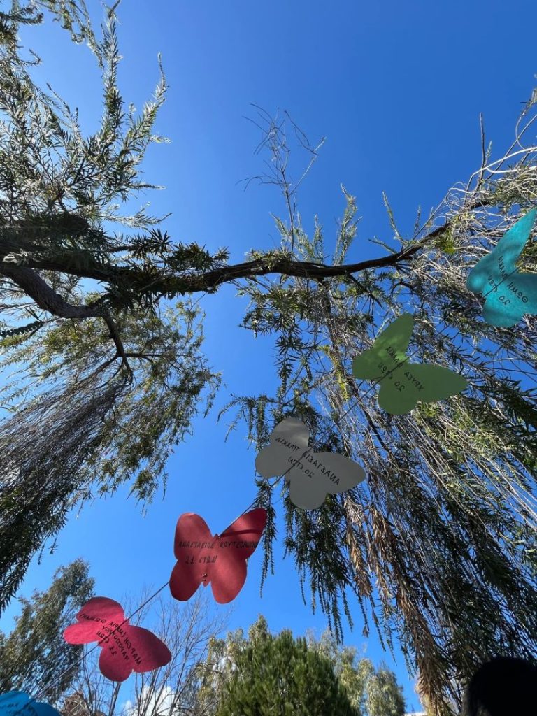 Μαθητές από το Γυμνάσιο Περάματος χορεύουν το χορό του Πένθους στη μνήμη των θυμάτων.