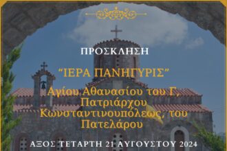 Με ιδιαίτερη χαρά και τιμή σας προσκαλούμε στην Ιερά Πανήγυρη του Αγίου Αθανασίου του Γ', Πατριάρχου Κωνσταντινουπόλεως, του Πατελάρου, που…