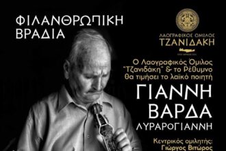 Φιλανθρωπική βραδιά προς τιμήν του Γιάννη Βάρδα – Λυραρογιάννη