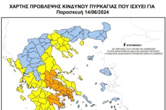 Σύμφωνα με το Χάρτη Πρόβλεψης Κινδύνου Πυρκαγιάς που εκδίδει η Γενική Γραμματεία Πολιτικής Προστασίας του Υπουργείου Κλιματικής Κρίσης & Πολιτικής…