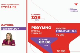 Στο Ρέθυμνο την Κυριακή η υποψήφια ευρωβουλευτής του ΣΥΡΙΖΑ Ολυμπία Τελιγιορίδου