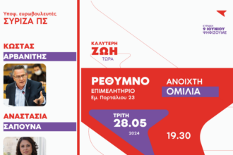Εκδήλωση του εκδήλωση ΣΥΡΙΖΑ με ομιλητές τους υποψήφιους ευρωβουλευτές Κ. Αρβανίτη – Α. Σαπουνά