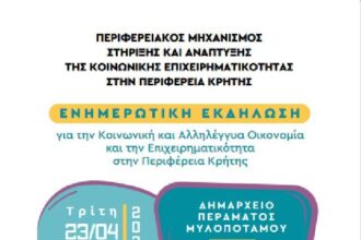Η Περιφέρεια Κρήτης και η Περιφερειακή Αναπτυξιακή Εταιρεία Κρήτης ΑΕ στα πλαίσια του έργου με τίτλο «Λειτουργία Περιφερειακού Μηχανισμού Στήριξης…