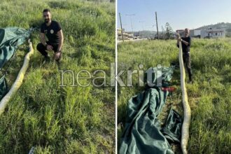 Σοκ για δύο άνδρες στο Ηράκλειο: Βρήκαν γιγάντιο πύθωνα σε χωράφι
