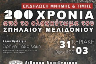 Εκδήλωση μνήμης και τιμής στο Πολεμικό Μουσείο την Κυριακή 31 Μαρτίου με αφορμή τη συμπλήρωση 200 ετών από το Ολοκαύτωμα του Σπηλαίου Μελιδονίου
