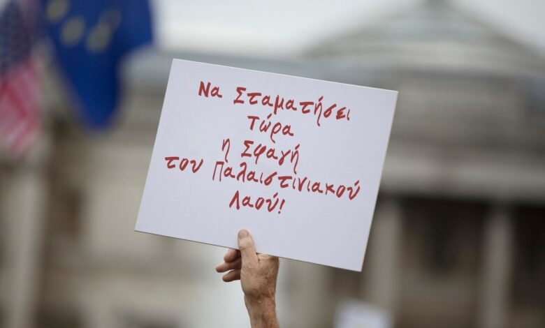 • Να καταδικάσει η ελληνική κυβέρνηση τα εγκλήματα του κράτους του Ισραήλ.