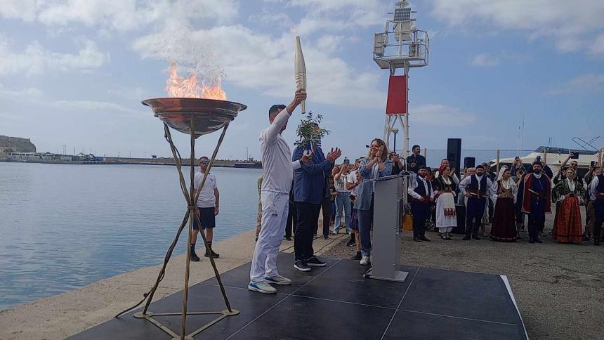 ήθος κόσμου έσπευσε να υποδεχτεί σήμερα το απόγευμα στη μαρίνα Ρεθύμνου την Ολυμπιακή Φλόγα, που ταξιδεύει σε όλη την Ελλάδα με τελικό προορισμό το Παρίσι και τους Ολυμπιακούς Αγώνες 2024.
