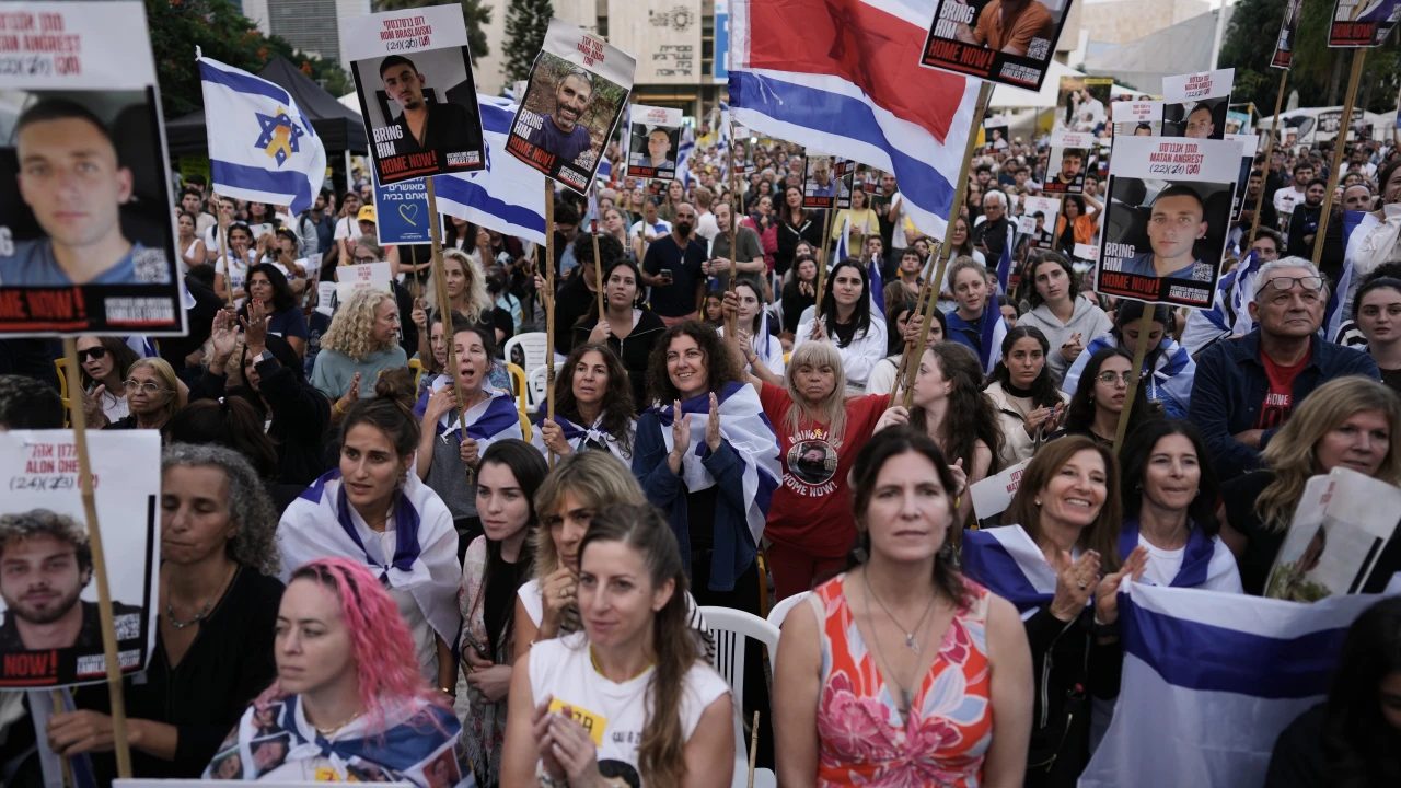 Πολίτες είναι συγκεντρωμένοι έξω από τη στρατιωτική βάση έτσι ώστε να πανηγυρίσουν όπως χαρακτηριστικά αναφέρουν την απελευθέρωση των ομήρων που παρέμειναν μέσα στη Λωρίδα της Γάζας επί δύο ολόκληρα χρόνια.